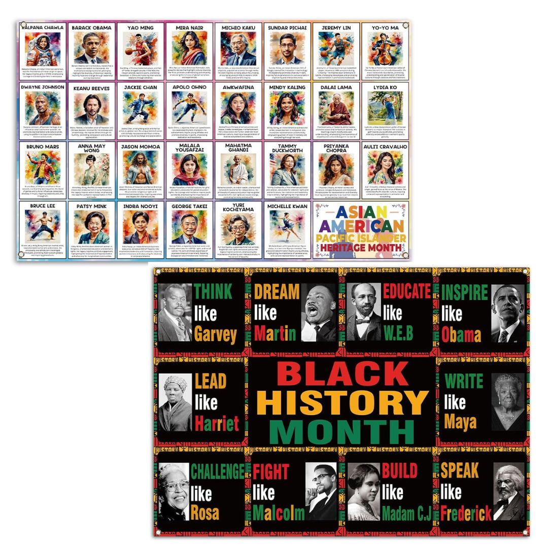 These banners celebrate people of diverse cultures, their histories, and contributions to society, specifically focusing on Black History Month and Asian American and Pacific Islander Heritage Month. These will be used in the 5th-grade classroom. Quantity needed: 1