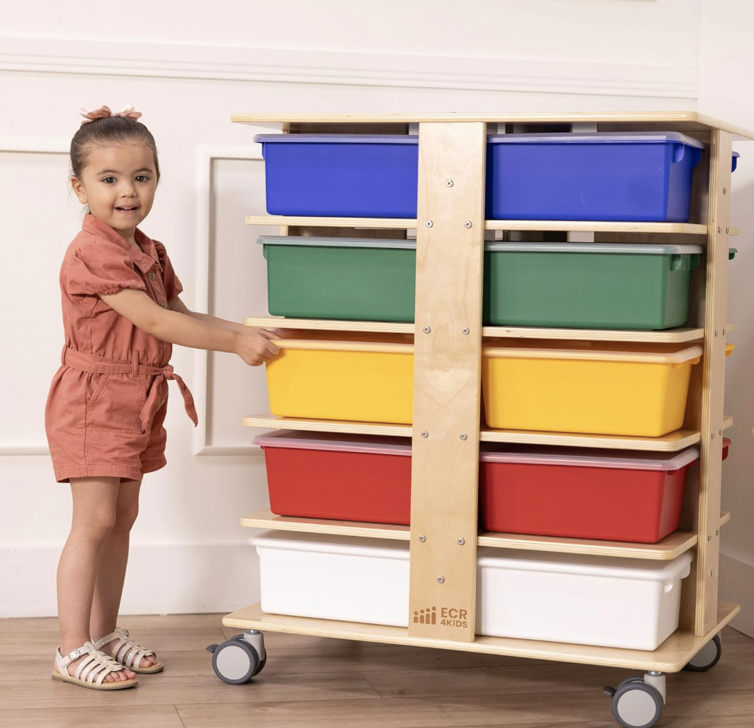 This colorful storage tower would replace an older cubby storage cabinet in our pre-k classroom. This wheeled storage tower is more space efficient and would be a wonderful addition to our pre-k classroom. Quantity needed: 1